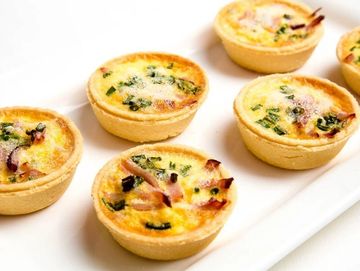 A popular warmed bite-sized catering option - Our Mini Quiches are made in-house with a delicious pastry case with rotating fillings.